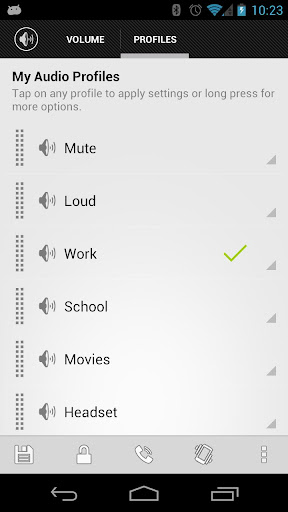 AudioManager is an application/widget that allows you to get all of your current volume levels straight from your home-screen. Tap on the widget to adjust volume levels independently. Save your audio settings as presets and use the built-in scheduler to automatically apply them for you.