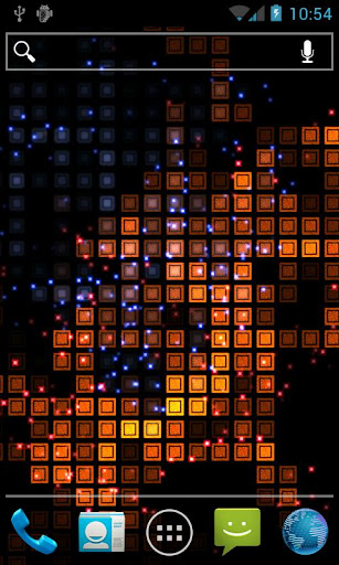 Your homescreen will burst to life with a grid that lights up in an electric pattern as you touch it! The multitude of shooting sparks is hypnotic. When you aren't touching the screen, the digital embers burn with subdued colors.