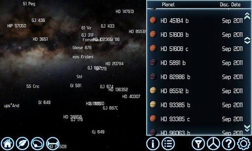 In addition to an intuitive interface which allows touch driven navigation through our Galaxy, Exoplanet Explorer also offers a comprehensive search tool which will let you find the planets and systems that you are interested in. This includes the ability to both search and sort by planet name, the number of planets in a system or even then number of stars in a system, to name just a few.