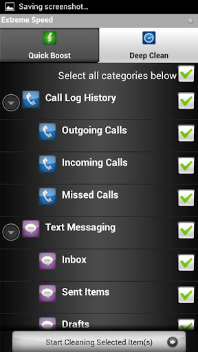 With ExtremeSpeed's Deep Clean mode, you can remove your phones call log history, text messaging, browser search history and much more. One simple screen will allow you to remove unwanted items that may be taking up space on your phone and slowing it down. This will allow you to reclaim more memory on your phone and improve its performance.