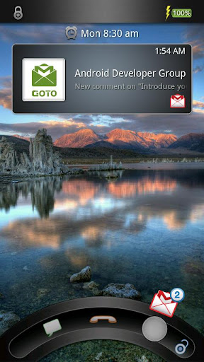 The GOTO lockscreen displays the number of new SMS messages over the text message icon and unread email over the Gmail inbox icon. Preview your missed calls by sliding over the missed call icon and jump right to the call log. When you move the slider over an icon, you get a preview and decide if you want to jump to the app to see more. Returning a missed call is just as easy. Now your lockscreen is your dashboard, eliminating one more step between you and the information you depend on.