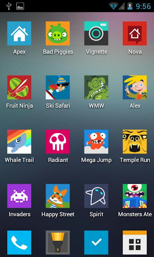 Note: For Go Launcher, the icons are set to large in the screenshots. You can easily do this by: menu > preferences > visual settings > icons > icon size > large size.