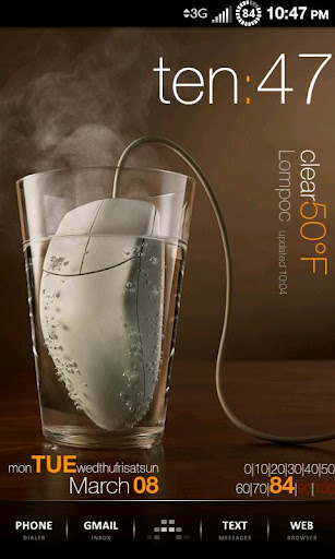 It can be configured to display time, date, battery and weather information. The layout of the widget is highly customizable through the layout editor.