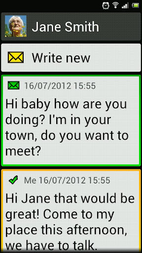 SMS messages are sorted in conversations; large font and color coding is used for displaying the message thread. Reply easily to any message with integrated SMS editor.