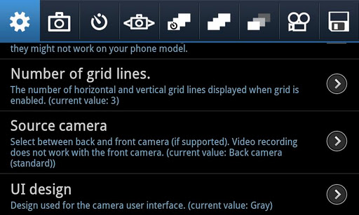 - Some still picure resolutions on some HTC devices are distored (e.g. 16:9 resolutions). Enable the "HTC fix" under settings to fix.