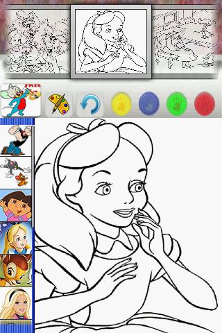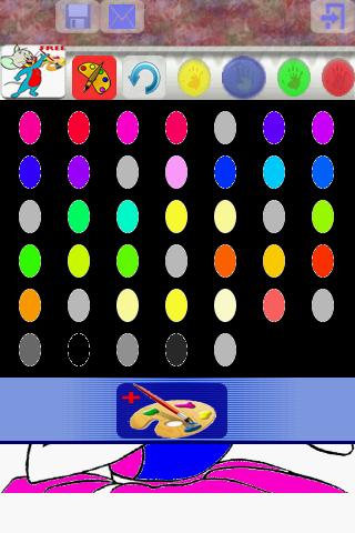 - Coloring mode: tap on 'popey' button to choose a picture to start coloring, choice a color to start painting