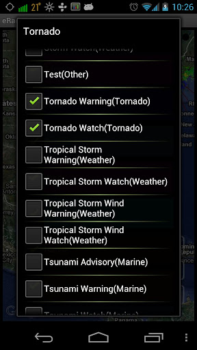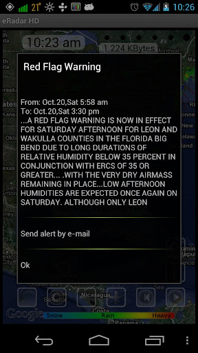 Hi-Def, Real-Time NOAA Radar with Watches, Warnings and Advisories on Google Map eRadar HD shows radar, watches, warnings and advisories for the United States Issued b...