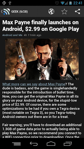 Note : The user credentials permission are for logging in to google reader with the google account registered on your phone, it's much more secure than a manual login.