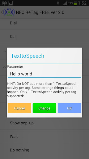 This app does not write or change any NFC tags (except you want to write a special (NFC ReTAG) tag for better dispatching--> no more pop-ups!) Reads only the ID of the tag!