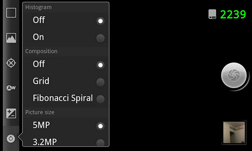 - Shoot better photos with 2 different on-screen camera composition aids: grid and Fibonacci spiral.