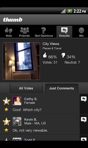 Instant Opinions. Real People. Need some quick feedback? In seconds, the Thumb community helps you with tons of opinions on any question…And in return, you can offer ...