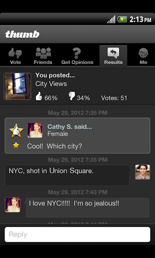 Need some quick feedback? In seconds, the Thumb community helps you with tons of opinions on any question…And in return, you can offer up your help to other community members.