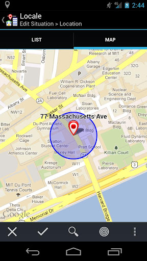Configuring is simple—it just works! To create a geofence location, drag and drop the pin on the map, resize the radius using your finger, and Locale does the rest.