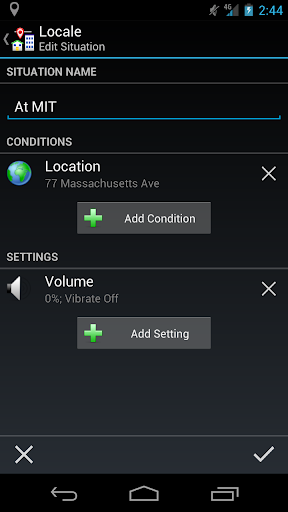 Locale's advanced artificial intelligence manages settings automatically. For example: arrive at work and instantly your ringer silences, your wallpaper snaps to that scenic Caribbean photo, and Wi-Fi switches on. With Locale, never worry about your ringer going off accidentally again. Once you experience Locale's power and convenience, you'll never want to be without it. Set it and forget it!