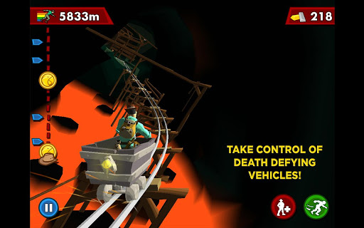 Escape the wrath of an angry volcano while collecting ancient treasures in PITFALL!, an adrenaline-fueled, free-running adventure set in a deadly jungle with twists and turns that will always keep you on your toes. As the iconic Pitfall Harry, test your skills by racing through jungles, caves and native villages while avoiding death-defying obstacles such as fiery volcanic flames, tumbling ancient artifacts, and narrow cliff side pathways. Challenge your reflexes by jumping, sliding, and using your deadly whip to take out classic PITFALL! foes like rattlesnakes and scorpions while avoiding the death grip of a crocodile’s jaw as you swing across ravines. Make sure to always keep a watchful eye as danger lurks around every corner!