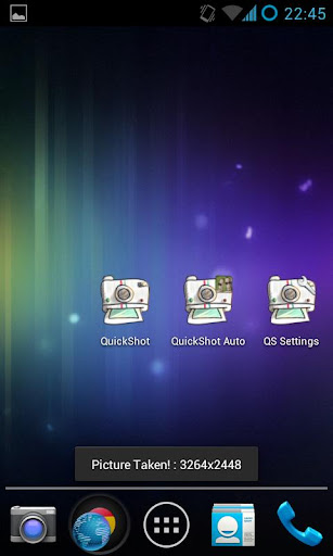 However, there is hope with the ultimate phone camera app, QuickShot HD. This app is the perfect way to capture those once in a life time moments. Once the app is installed, you simply add the icon to your homescreen and get ready. Now when the moment arises all you need to do is point your phone in the right direction and click the icon on your homescreen and the picture is saved to your gallery.