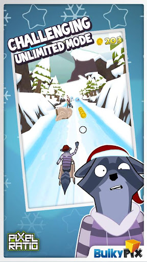 Help the poor Aby, the unluckiest and bumbling of the raccoons, to escape his pursuers. Wether hunters in his native forest, policemen in the city or bikers on the road 66.5, Aby never stop running to escape all dangers.