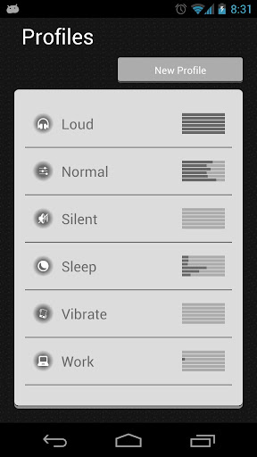 Profiles are a way to save and restore audio profiles, with one tap put your phone on Silent, Vibrate, Loud, Sleep, or whatever you can imagine.