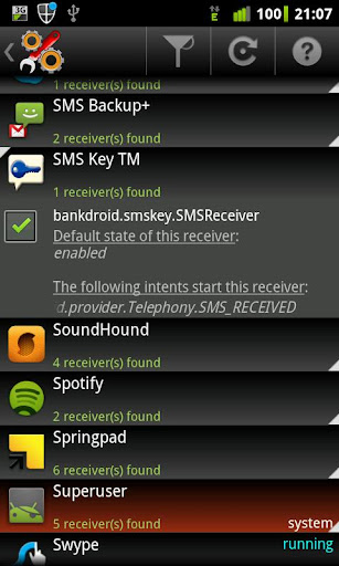 In advanced mode you gain control over all the system-wide events and enable-disable application starts. This is the ultimate solution to control what you want to be started, but you also can break apps, so this feature is only for experienced users with rooted devices.