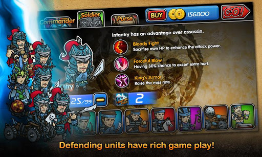 - Diversified soldier types: Long-range Archer, fatal-attack Infantry, solid Heavy Armor, brave Knight, magical Wizard, powerful Catapult, assistant Drummer play their roles in the game. If being used properly, they are the key factors of victory.