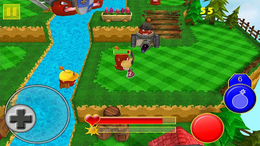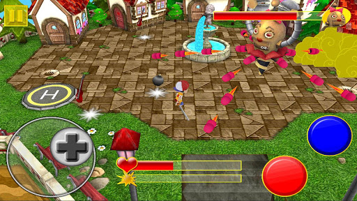 We will fight the aliens with the help of the Professor, Katy's father, who throws objects from his plane to support us. He throws many weapons, ranged and melee, such as swords, hammers, crossbow, rocket launcher and so on. Furthermore he provide us with secondary weapons that will help us to defeat the enemy, and items to recover our vital energy, increase our strength, speed or even stop time.