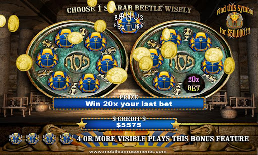 Try to win as much cash as possible by also playing features such as the Scarab Beetle Bonus Feature, Jewels of Isis and the Treasure Tomb to accumulate virtual credit prize bonuses.