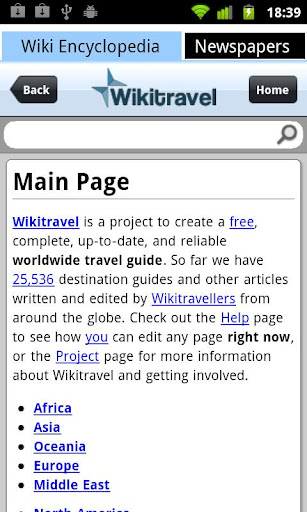 -Android application for mobile Wikipedia Encyclopaedia use. "The free encyclopedia". Wiki encyclopedia pro also works on tablets using Honeycomb (Android 3.0).