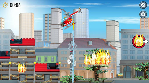 There’s a fire in LEGO City! Help the fireman and his trusty firedog put out the fires across LEGO City by climbing the fire truck ladder and using the fire hose. Use the fire hose to put out all of the fires in every level. Some fires will be harder to reach than others!