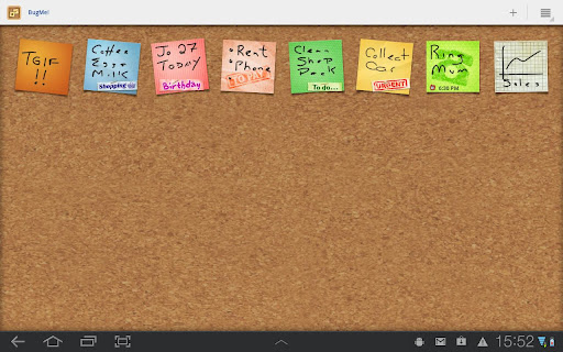 It's time to bring your yellow sticky postit notes up to date - BugMe! brings all the fun and flexibility of the handy little notes right to your smartphone or tablet. Pin them to a virtual cork board within the app and set alarms and alerts, or use the BugMe! Widget to “Stick” your note on your launcher screen for that extra visual reminder!