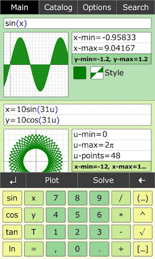 MathStudio is the first and only graphing app that can also graph not only in space but in time. Use the T variable to create animated plots that plot graphs in space and time!