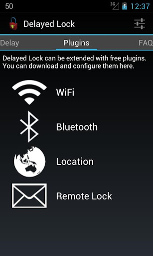 - Upgradable with free plugins: Unlock with WiFi, Bluetooth or location based and remote activate lockscreen via SMS