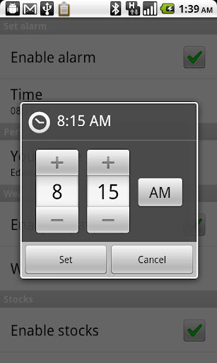 - Your Google calendar appointments for the day (requires Android 2.0+)