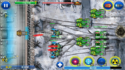 Tank ON - Modern Defender is the arcade with RPG elements. You have to defend your base from the attacks of enemy jeeps, tanks and helicopters.