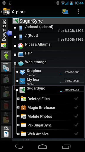 X-plore can access various web storage "Cloud" servers, and access their files.