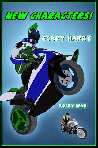 - Compete for best wheelie score by holding the screen to wheelie while playing as Jake or Jonny