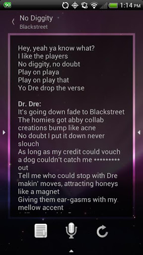 - Download lyrics for a song which are embedded directly in the music file (or optionally saved in an external text file). Pinch/zoom the lyrics to change the font size. Feel like singing along? Use the karaoke feature to record yourself as you view the lyrics.