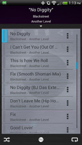 - From anywhere within the app, swipe from the bottom to reveal music controls and the Now Playing list.